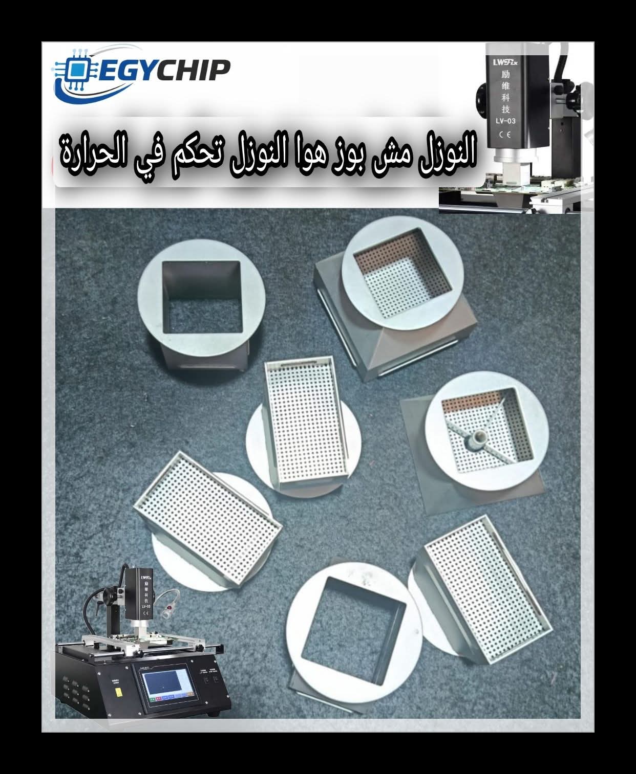 النوزل ببساطة هو بوز الهوا السخن اللي بيخرج من المكنة لتسخين الشيب بس مش كده وبس.ركز معايا واسمع: هو كمان اللي بيحدد الهوا هيروح فين وعلى قد إيه.يعني ببساطة مش أي تسخين وخلاص، ده اسمه Air Flow Control التحكم في اتجاه الهوا وكمان سرعة الهواء (Velocity) ونقل الحرارة (Heat Transfer Efficiency) وشكل توزيع الحرارة (Heat Profile)النوزل اللي فوق يساعد على تركيز الهواء الساخن/الحرارة على منطقة محددة، وده اللي بيعمل Heat Focus (تركيز الحرارة) على الشيب بس.لازم يكون قريب من مقاس الشيب، علشان الحرارة تروح للمكان الصح من غير ما تسيّح اللي حواليه.لو النوزل كبيرة زيادة، الحرارة هتوسع وتضرب مكونات جنب الشيب، وده بيبوّظ الشغل من غير ما تاخد بالك.ولو صغيرة، التوزيع أو التغطية مش هتكون كاملة وهيبقى في Thermal Distribution (توزيع حراري) غلط.اللي تحت بقى مش نوزل بنفس الفكرة، ده اسمه Bottom Heater (السخان السفلي).وظيفته يعمل Preheat (تسخين مبدئي) للبوردة كلها قبل ما تركز فوق.ده مش بيستهدف الشيب، ده بيظبط حرارة البوردة كلها علشان يمنع Thermal Shock (صدمة حرارية).علشان كده إحنا بنغير في النوزل اللي فوق حسب المقاس، التسخين السفلي جزء من التحكم في المنحنى الحراري مش مجرد توزيع ثابت وخلاص (Thermal Profile) ببساطة كدا اللي فوق تركيز، واللي تحت تمهيد.والشغل الصح هو Process Control (تحكم في العملية)، مش مجرد تسخين وخلاص
