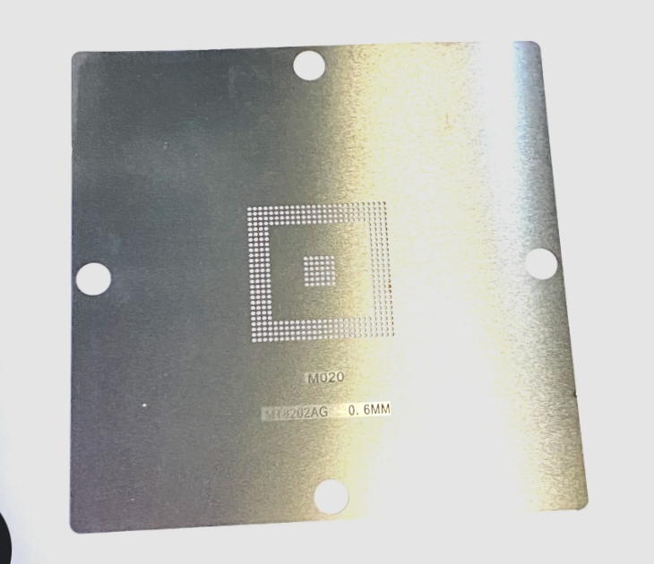 شبلون BGA مصنوع من معدن عالي الجودة مصمم لإعادة تركيب كرات القصدير بدقة فائقة. يوفر توزيعًا متساويًا للكرات بفضل فتحاته الدقيقة (0.6 مم)، مما يجعله مثاليًا لصيانة الماذربورد والآي سي في الهواتف وأجهزة الكمبيوتر. أداة أساسية لكل فني صيانة محترف.