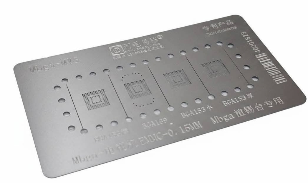 شابلون BGA احترافي مخصص لمعالجات Moga، مصمم بدقة عالية لإعادة تركيب كرات القصدير بسهولة واحتراف. مصنوع من خامات قوية تتحمل درجات الحرارة العالية، ويُعد أداة أساسية لفنيي صيانة الهواتف والدوائر الإلكترونية.