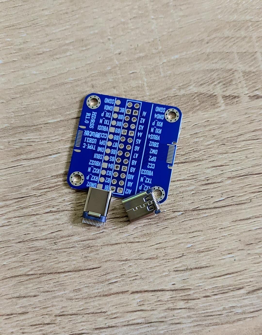 • تحتوي على نقاط اختبار ومنافذ مسماة لمختلف الإشارات مثل VBUS و GND و CC1/CC2 و SBU1/SBU2 و D+/D- و RX/TX.